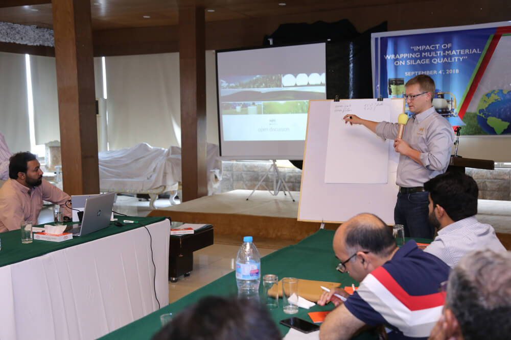 The Farm Dynamics (Pvt) Ltd. Pakistan & SILOTITE Belgium, jointly hosted an informative seminar on above cited subject. In participation, we had commercial silage producers, corporate consumers, exporters, agri consultants and nominations from different working agencies and academia. The eminent speaker was Mr. Johannes, from Austria.