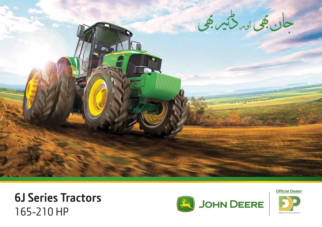 John Deere tractors are recognized as best for their performance. FDP is an authorized John Deere Tractors Dealers in Pakistan that offers you a wide range of high horsepower tractors (95HP to 210HP) of this remarkable brand. These industry leading tractors are known for their: